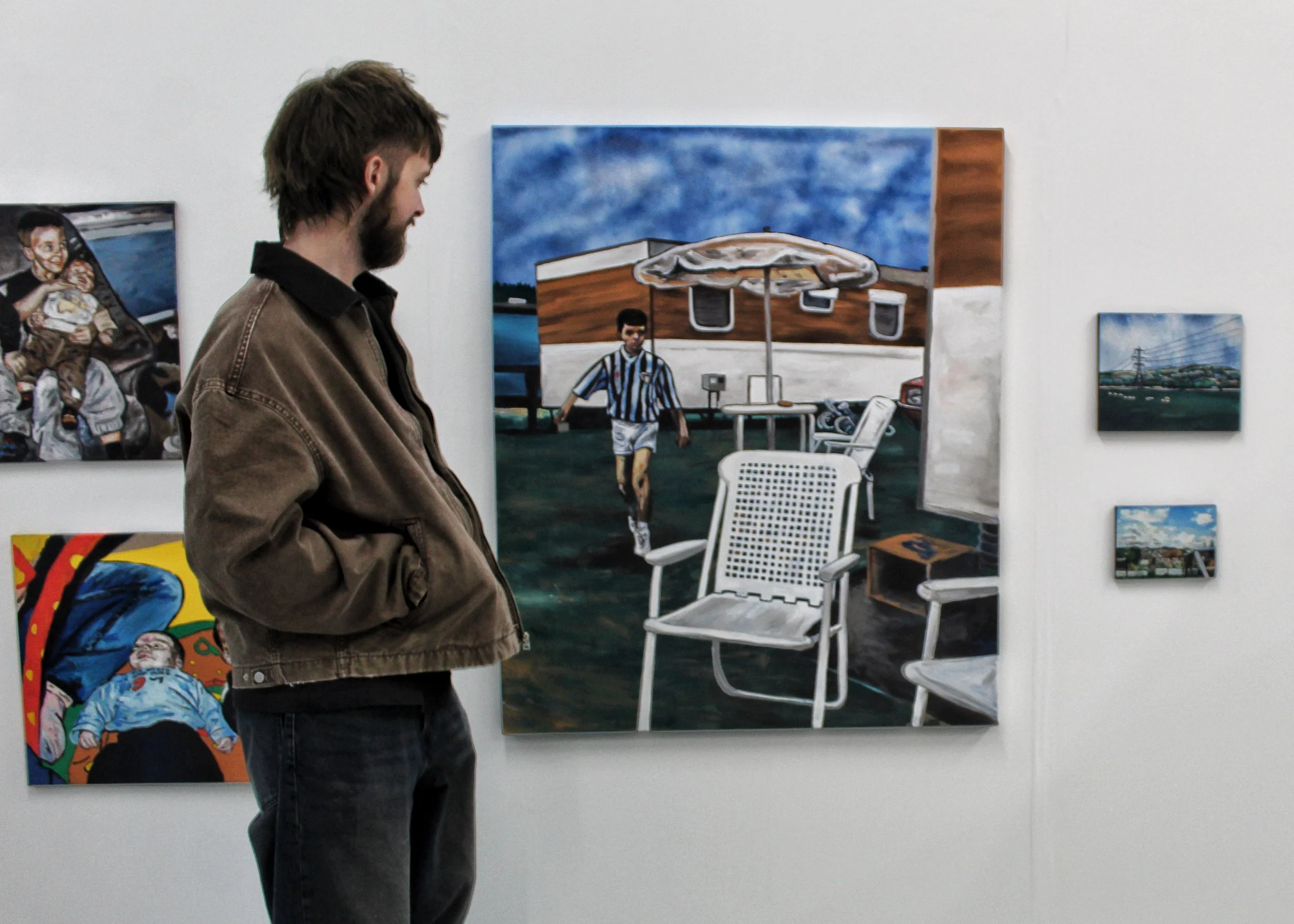 Over my last year at GSA and since graduating, my practice has focused on telling the stories of working-class life in Clackmannanshire, the part of central Scotland where I grew up. Drawing on old family photographs, I’ve been painting everyday, candid moments like Sitting in a living room with a gran, standing in the garden on a sunny afternoon and giving them the same weight and attention usually reserved for more formal portraiture.