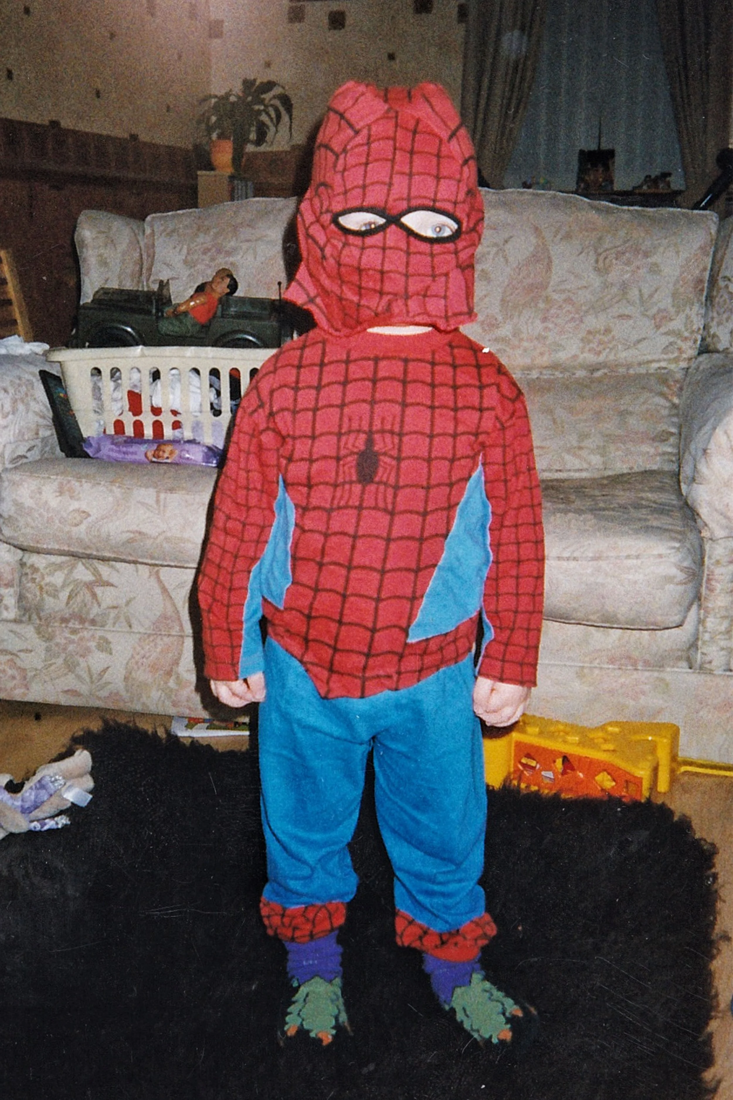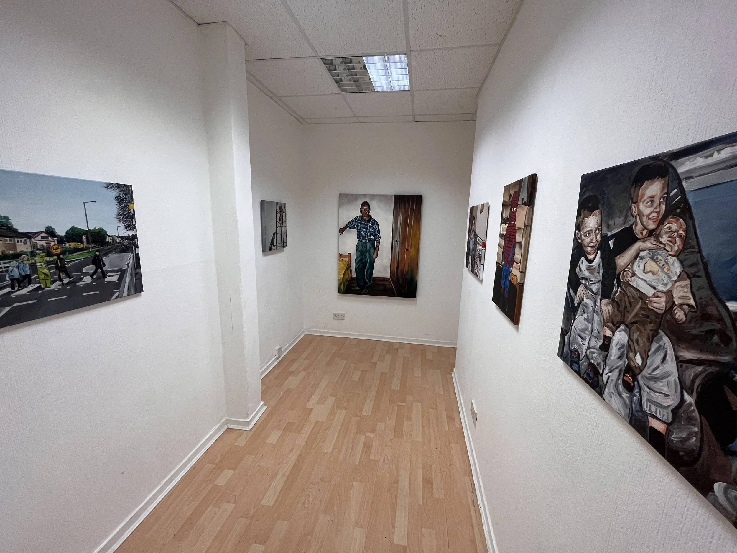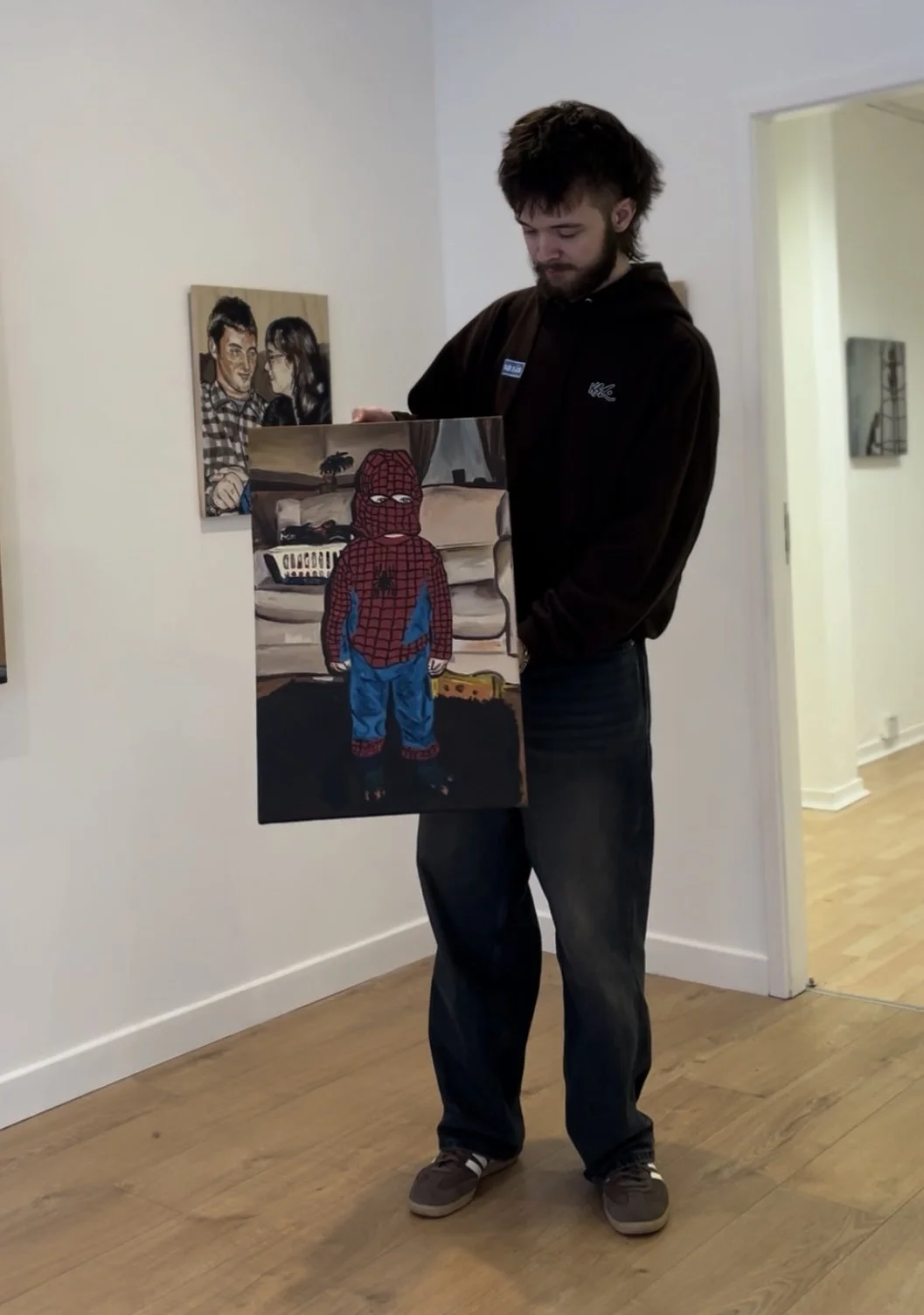 The painting itself is a portrait of me as a boy, dressed in a Spider-Man suit. It’s part of my “Common People” series, where I’ve been working from old family photos and reimagining them as paintings. The whole idea behind the series is to highlight everyday moments and working-class life in a way that feels honest and relatable.