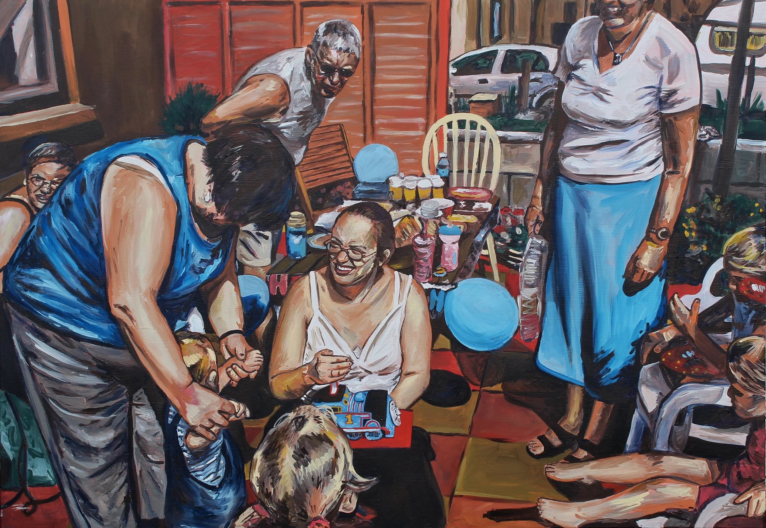 I also had another painting, “My First Birthday”, longlisted for the awards. That one focuses more on family gatherings and those kind of shared moments. It didn’t make the final shortlist, but I’m still really pleased it got that far, especially considering there were over 2,500 entries across the awards, with 127 works selected overall for exhibition.