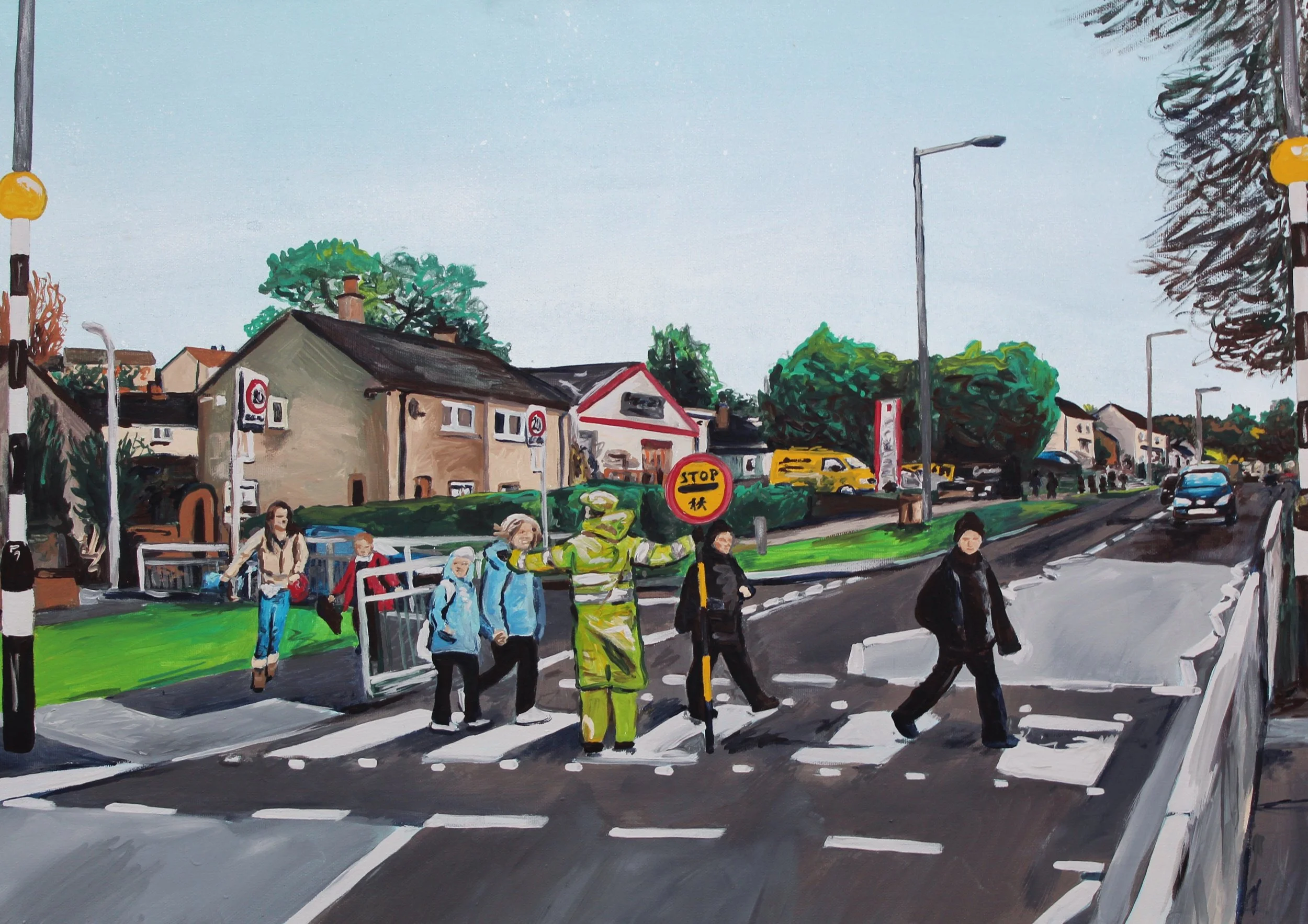 Lollipop Lady, Emulsion, Acrylic & Spray Paint on Canvas, 50x70cm, 2025
